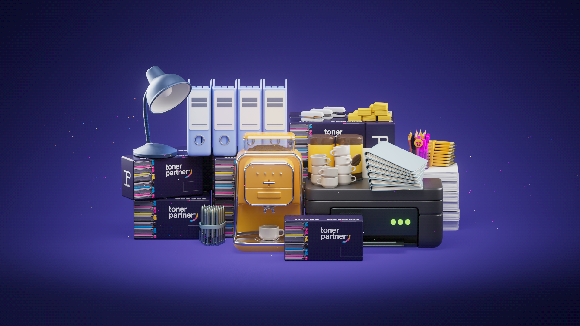 The 3D animation was a continuation of TonerPartner's 2020 rebranding, focused on the presentation of a wide range of products – Tony, the character, is shown upgrading everything in your office.